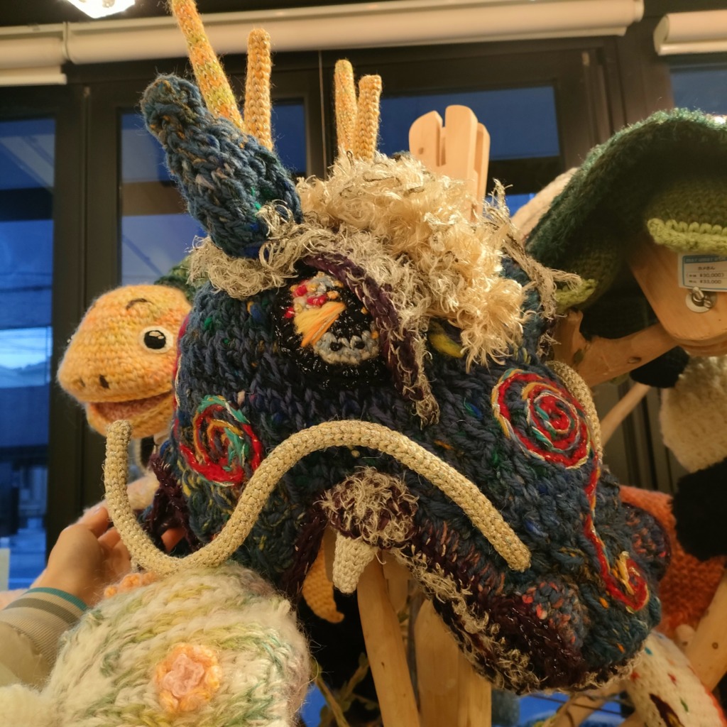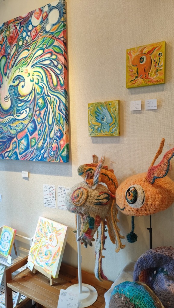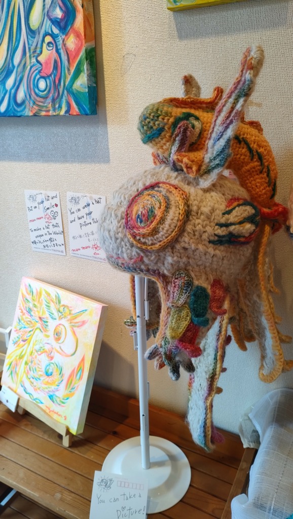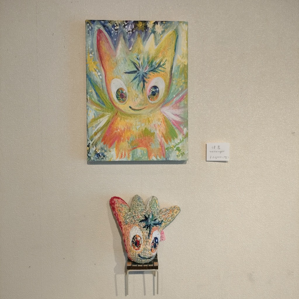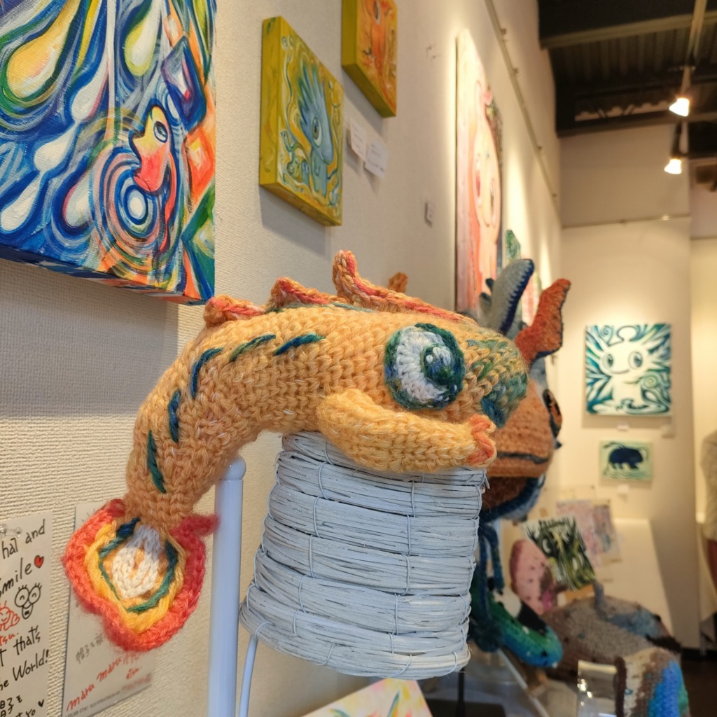ミズホドリ(私)の絵画作品 × まるまる悦(えっちゃん)の編み編み作品